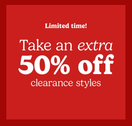 Eddie BauerStop by and take an extra 50% off clearance styles in store for a limited time.